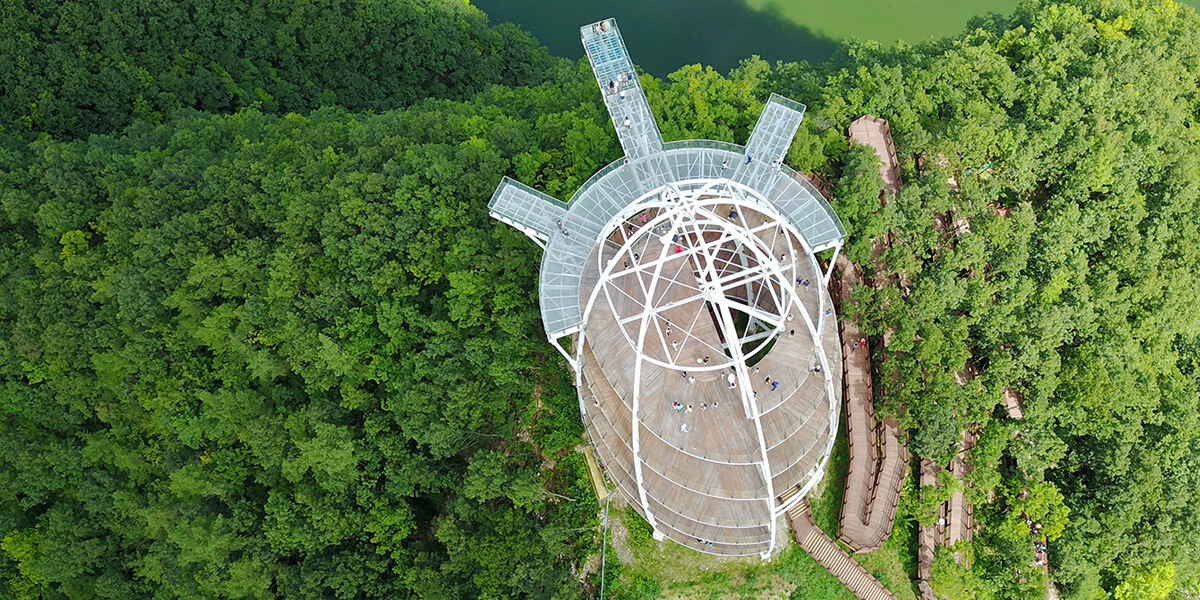 만천하스카이워크는 만학천봉전망대와 짚와이어 등 다양한 레포츠 시설을 제공합니다. 전망대는 원형으로 설계되어 소백산, 금수산, 월악산 등 백두대간의 명산들을 감상할 수 있으며, 아래에는 980m 구간의 짚와이어가 있어 남한강 호반을 배경으로 스릴과 스피드를 즐길 수 있습니다.