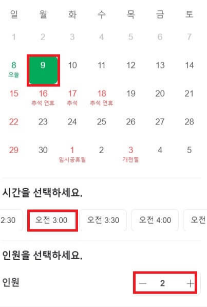 4. 예약하고자 하는 시간이 없다면 아래와 같이 예약이 가능한 시간으로 선택합니다.