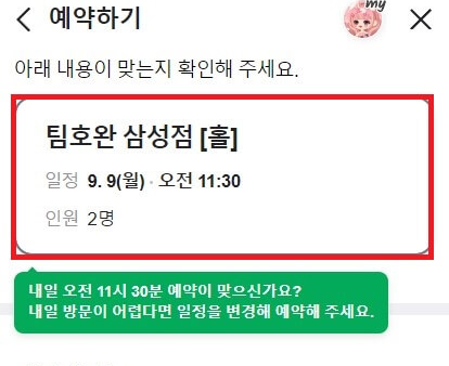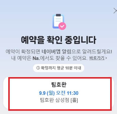 7. 예약확인중인 화면을 확인할 수 있습니다.