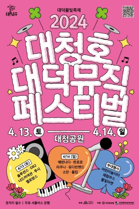 대전 | 대청호대덕뮤직페스티벌 | 04.13 ~ 04.14 | 대전 대덕구 대청로 607 | 축제 홈페이지 ▶ |