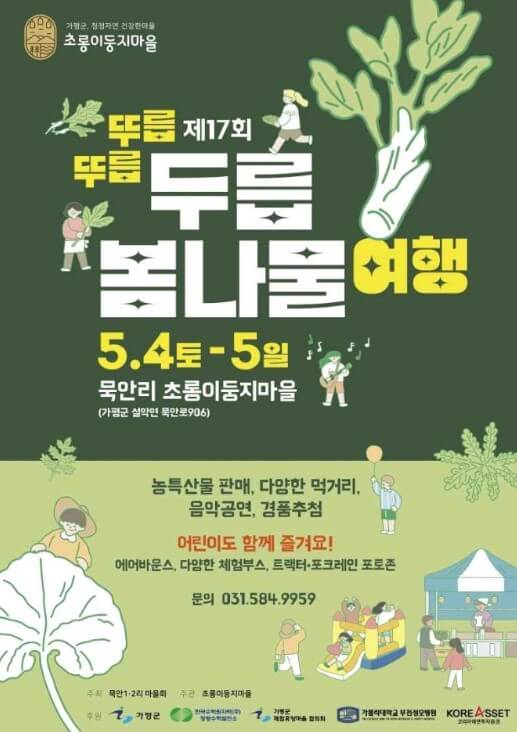 신선한 두릅, 봄나물을 체험할 수 있고, 풍성한 농특산물과 공연 등 다양한 프로그램으로 온가족이 함께 할 수 있는 축제입니다. 👉 초롱이둥지마을 |